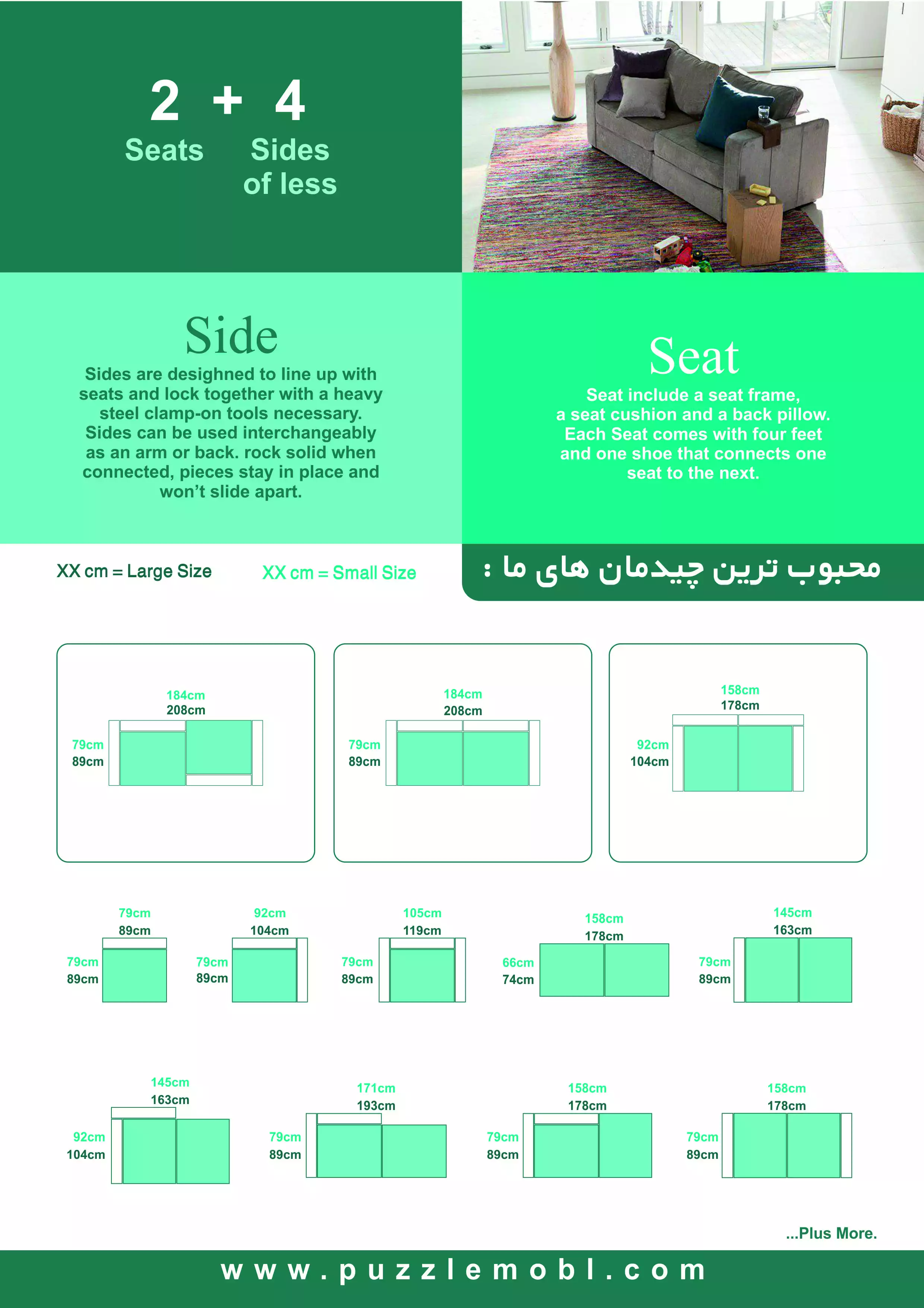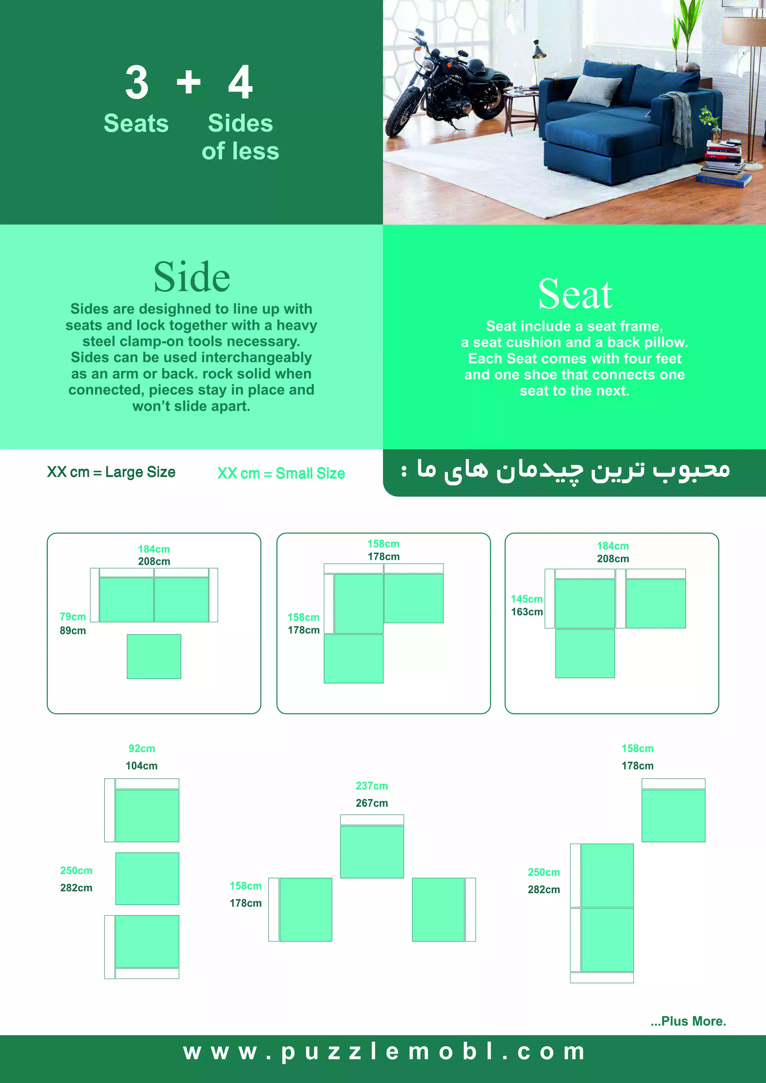 هرگونه کپی برداری پیگرد قانونی دارد دارای گواهی ثبت اختراع و طرح صنعتی ال پازل شامل قسمت نشیمنSEAT (3 تکه :باکس+تشک+پشتی) قسمت دسته SIDE ال پازل اولین مبل دانش بنیان ایران با ضمانت مادام العمر کلاف #نهایت راحتی وآرامش #قابلیت انبارداری راحت با اشغال کمترین فضا #قابلیت شستشوی کاورها با ماشین لباسشویی(آب سرد) # تعداد نشیمن و دسته به سفارش مشتری از یک عدد تا بی نهایت تعداد پیشنهادی شرکت موجود در عکس ها: 2+4 3+4 4+4 3+5 4+5 5+5 6+6 6+8 7+8 8+10 10+12